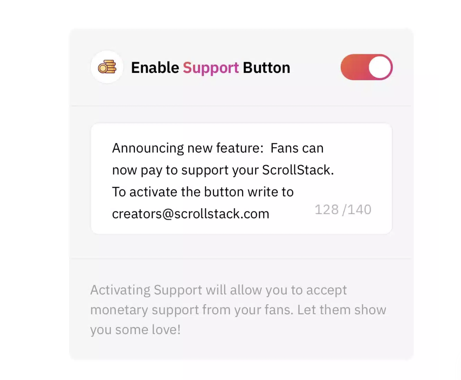 Enable the Support button and write a short note on why people should contribute to your ScrollStack,