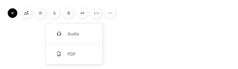 The third option on the editor menu will allow you to do that. We support audio with formats like mp3, m4a, aac, wav, or flac.